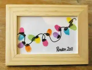 A sweet way to preserve those tiny fingerprints is with this simple framed craft from Beneath the Rowan Tree. Scatter different colored fingerprints across a cardstock paper and connect them with a swirly line from a permanent marker. Cut the cardstock to fit a frame, and you have a personalized touch to your living room every holiday season.